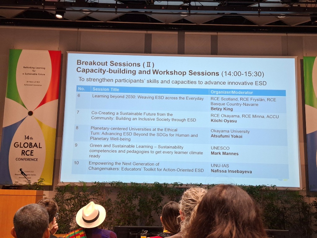 Del 21 al 23 de octubre de 2025 se celebró en Okayama (Japón) la 14ª Conferencia Mundial de Regional Centres of Expertise (RCE) en Educación para el Desarrollo Sostenible (EDS), reuniendo a más de 260 participantes de todo el mundo. Coincidiendo con el 20º aniversario de la Red Mundial de RCEs, el evento sirvió para reflexionar sobre dos décadas de acción e innovación de los RCEs, al tiempo que se trazaba el rumbo para los próximos años.