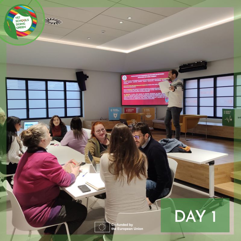 La primera de ellas, parte de un proyecto europeo para trabajar los Objetivos de Desarrollo Sostenible (ODS) en centros de Formación Profesional (FP) de Finlandia, Países Bajos, Italia y Estonia, además de Euskadi (Centro San Viator) tuvo lugar el martes 27 de febrero, y tuvo como participantes a 22 profesores de centros de estos 5 países.