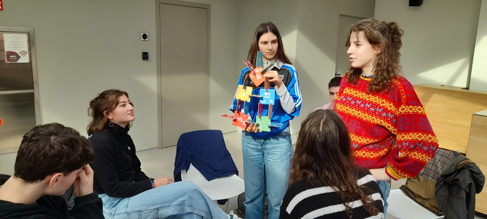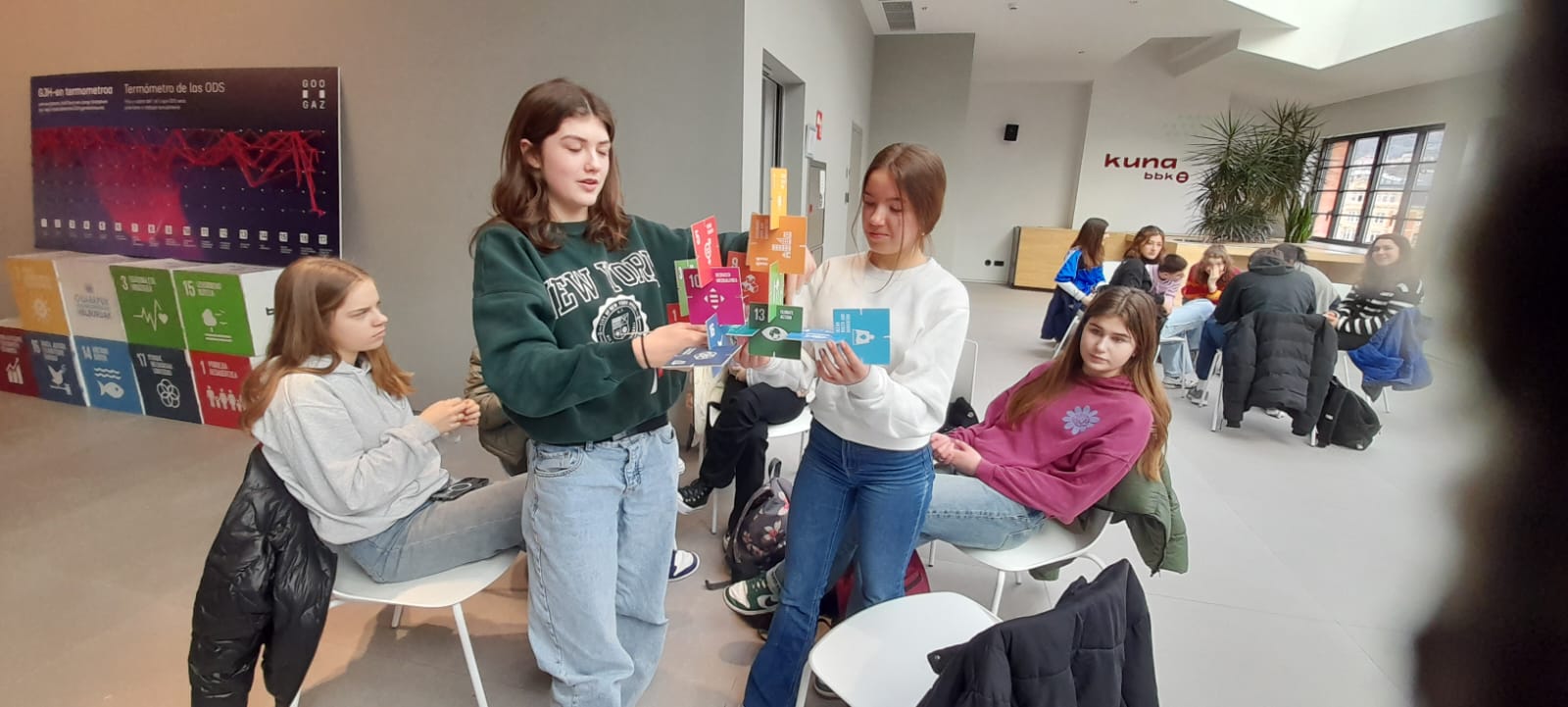 El objetivo del proyecto consiste en trabajar algunos de los 17 ODS, conociendo diferentes pueblos y lugares, y desarrollando proyectos de manera colaborativa. Así, la sesión formativa se organizó en el marco de su semana de estancia y visitas en Euskadi, conociendo los 18 ODS y su aplicación en el día a día.
