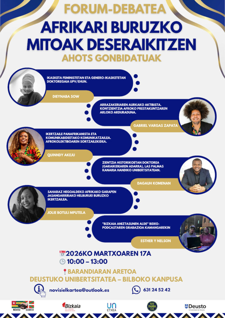 Novisi Elkarteak, UN Etxearekin eta Damba Kulturarekin lankidetzan eta Bizkaiko Foru Aldundiaren laguntzarekin, “Afrikari buruzko mitoak deseraikitzen” fórum-debatea aurkezten dugu. 2026ko martxoaren 17an izango da, 10:00etatik 13:00etara, Barandiaran Aretoan (Deustuko Unibertsitatea – Bilboko Campusa).