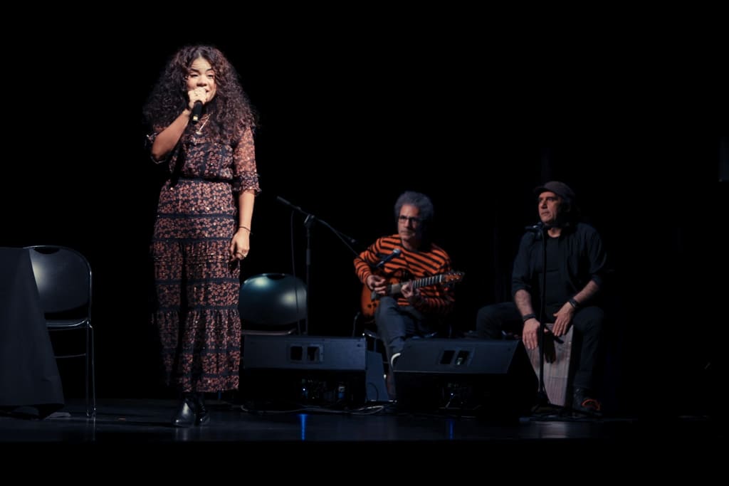 Musikak obra osoa zeharkatzen du emozioak eusten dituen hari ikusezin gisa. Dariana, bere ahots bero eta indartsuarekin, eszena bakoitza besarkatzen duen kantu bihurtzen du. Kike eta Joseba perkusioarekin eta gitarrarekin laguntzen dute, hitzekin eta istorioekin elkarrizketan dauden erritmoak sortuz, isiltasunei bizia eta pitzadurei indarra emanez.