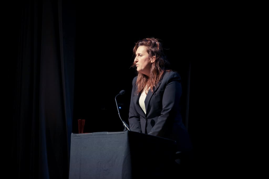 - Marian, “errauskine kamikaze”, kapazitismoari aurre egiten dio umorez eta amorruz, plater huts batek brindatzeko, barre egiteko eta osotasunez bizitzeko gaitasuna definitzen ez duela erakutsiz. “Nire platera hutsik egon arren eta nire hankek mahaiburura eraman ez arren, gai naiz aretoa nire hitzekin betetzeko”.