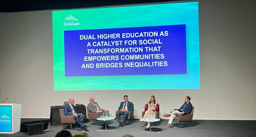 Apirilaren 2tik 3ra Donostian eta Bidarten egin zen “EU4Dual Conference” konferentzian parte hartu genuen. Goi-mailako Hezkuntza DUALA hezkuntza-eredu bat da, eta unibertsitateko prestakuntza akademikoa eta enpresa bateko esperientzia praktikoa uztartzen ditu, enplegagarritasuna hobetuz, berrikuntza sustatuz eta ikaskuntza indartuz.