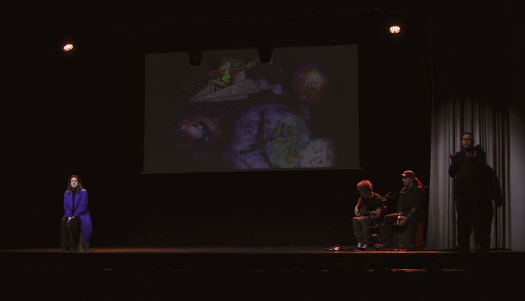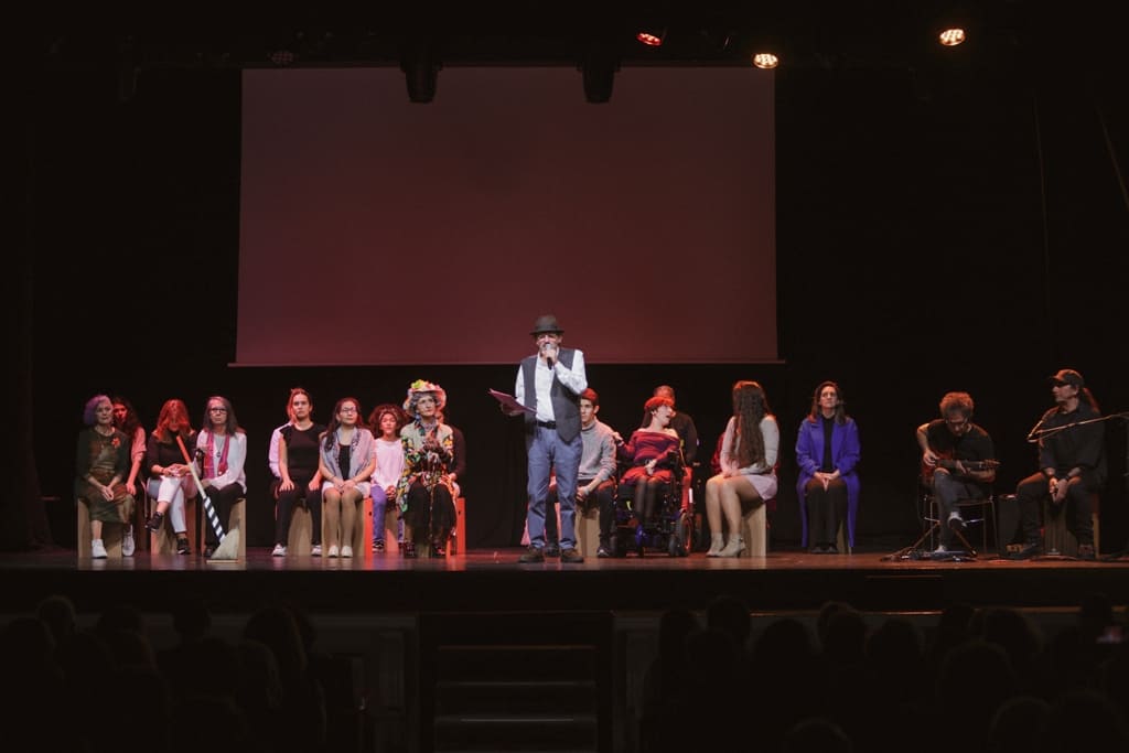 A bordo del tiempo refleja las emociones y pensamientos que surgieron a lo largo de este proceso. La obra invita a una profunda reflexión sobre nuestra sociedad actual y el futuro que queremos construir. Con metáforas tan potentes como una estación abandonada, un tren que simboliza el viaje de la vida y la necesidad de mover la palanca de cambio de vías para no caer al precipicio, A bordo del tiempo destacó las historias de personajes diversos, desde ancianas llenas de sabiduría y humor hasta mujeres que enfrentan barreras culturales y sociales. Los testimonios reales y las reflexiones poéticas ofrecieron un mosaico de perspectivas sobre los desafíos de convivir en un mundo en transformación.