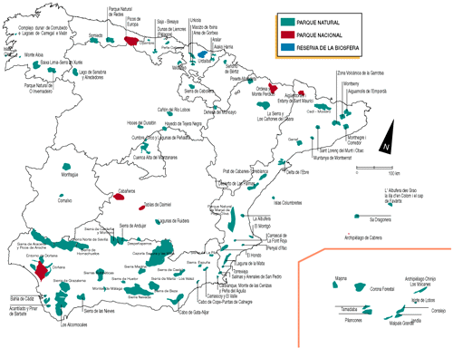 Según la legislación vigente, los espacios naturales se clasifican en las siguientes categorías: Parques, Reservas Naturales, Monumentos Naturales y Paisajes Protegidos.