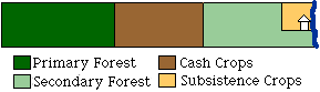 | Maximum income strategy 2 hectares of coffee on primary forest 1 hectare of cacao on primary forest 1 hectare of maize on secondary forest | Moderate income strategy 1 hectare of coffee on secondary forest 1 hectare of cacao on primary forest 1 hectare of maize on primary forest | Maintain current fields 2 hectare of coffee on secondary forest 1 hectare of cacao on secondary forest 1 hectare of maize on secondary forest |