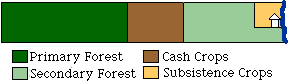 | Maximum income strategy 2 hectares of coffee on primary forest 1 hectares of cacao on primary forest 1 hectares of maize on secondary forest | Moderate income strategy 1 hectare of coffee on secondary forest 1 hectare of cacao on primary forest 1 hectare of maize on primary forest | Maintain current fields 2 hectares of in coffee on secondary forest 1 hectare of in cacao on secondary forest 1 hectare of in maize on secondary forest |