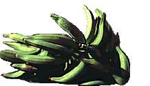 | Plantains look like large bananas,but they have a bitter taste unless cooked. They can be picked green oryellow. |  |